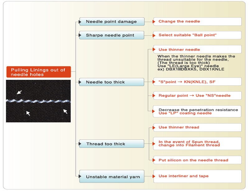 Pulling Linings out of needle holes